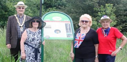 A new plaque created by John Woolston, the Resident Museum Graphics Volunteer, was unveiled on Woodcock Hill on Saturday by Elstree & Borehamwood Town Mayor, Cllr. Clive Butchins. Cllrs Pat Strack and Sandra Parnell were also on hand to show off the new plaque which describes in detail the history of the Beacon on the top of the Hill. Photo by Andrew Grady