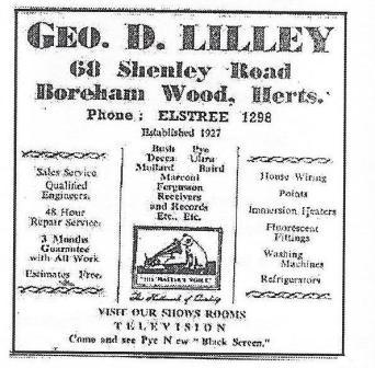 The Museum’s photo archive contains many images of Shenley Road over the years. Here, the white shop on the corner of Shenley and Furzehill Roads was bought by Geoffrey Lilley in 1943. His wife was made manager while he worked in an aero factory on Spitfires. When the war ended he returned and built up a business that by 1951 was one of the most extensive radio & electrical shops in South Hertfordshire.