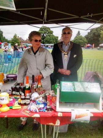 Many thanks to everyone who donated or bought tickets from Mayor Clive Butchins whose Tombola on the Town Council stand was in aid of the Musuem. He raised some serious money to help us survive! Here he is with a helper grabbing the passers-by.