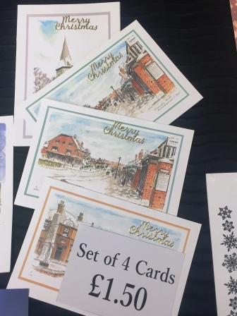 Come down this weekend to get some beautiful Christmas cards, all themed around Elstree and Borehamwood. We always have over sixty exclusive hand-painted watercolour cards available, all featuring local views over the last century, and 8 of them are specially chosen for their Christmas themes - the price is only 50p per card. We also have four new glossy cards based on Borehamwood and Elstree photos and these are individually wrapped for £1 each. In addition there is a pack of 4 small cards for £1.50.