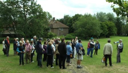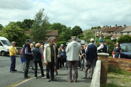The yearly Museum History Walk took place on Sunday 21st and although it was the longest day, it wasn’t the longest walk! But it was the best attended so far with over 40 of us history fans following Dave Armitage, the Museum Manager, around the housing areas and open spaces in north east Borehamwood. We were exploring the rapid growth of Borehamwood’s houses and schools after the war when the LCC built over 4000 houses in the early 1950s. We also took in the Football Club, the long–gone