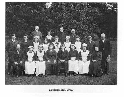 There are no records of domestic staff before 1900 but in 1922 names were recorded. Altogether, including masters, there were thirty five adults taking care of eighty boys. Staff employed were: butler and footman, chauffeur, groundsman, carpenter, stoker, bootman, head gardener and two under gardeners, head cook, eight resident and three non-resident housemaids, housekeeper and secretary, a sister and a matron. There were eight resident masters.