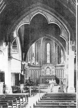 In 1870 Sanderson erected a wooden chapel which was later bought by the Earl of Devon in 1874. In 1875 Sir Arthur Blomfield was commissioned to build a red brick chapel in the sports field. It could hold 250 people and was built in the Gothic style with stained glass windows, one of which was designed by C E Kempe. The foundation stone was laid by Dr Butler and it opened in 1877. Although it was situated a few hundred yards into the Diocese of London, it was mainly used by the Bishop of St Albans for confirmations. It is said that this was because the two bishops concerned played the chapel for a game of golf and St Albans won.